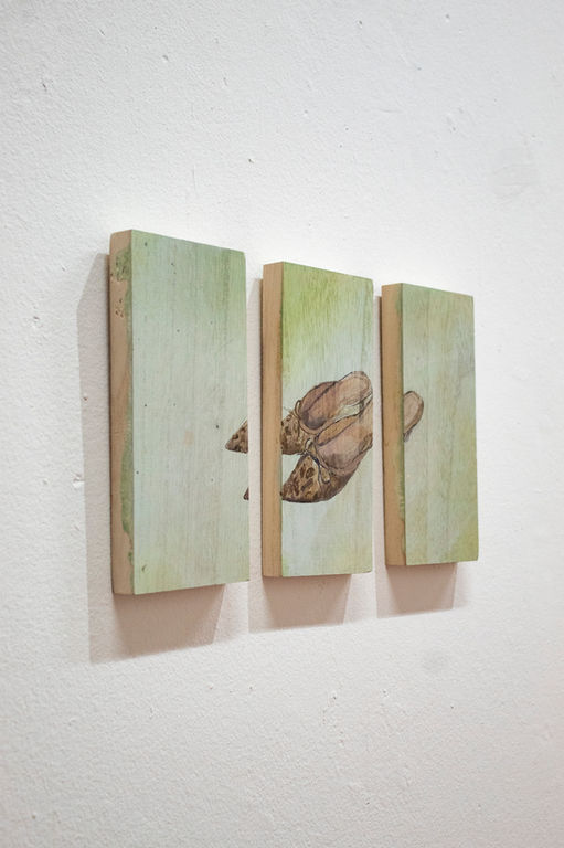 My Mother's Shoes, Acrylic on Wooden Planks 9.6 cm x 6 cm per plank SOLD